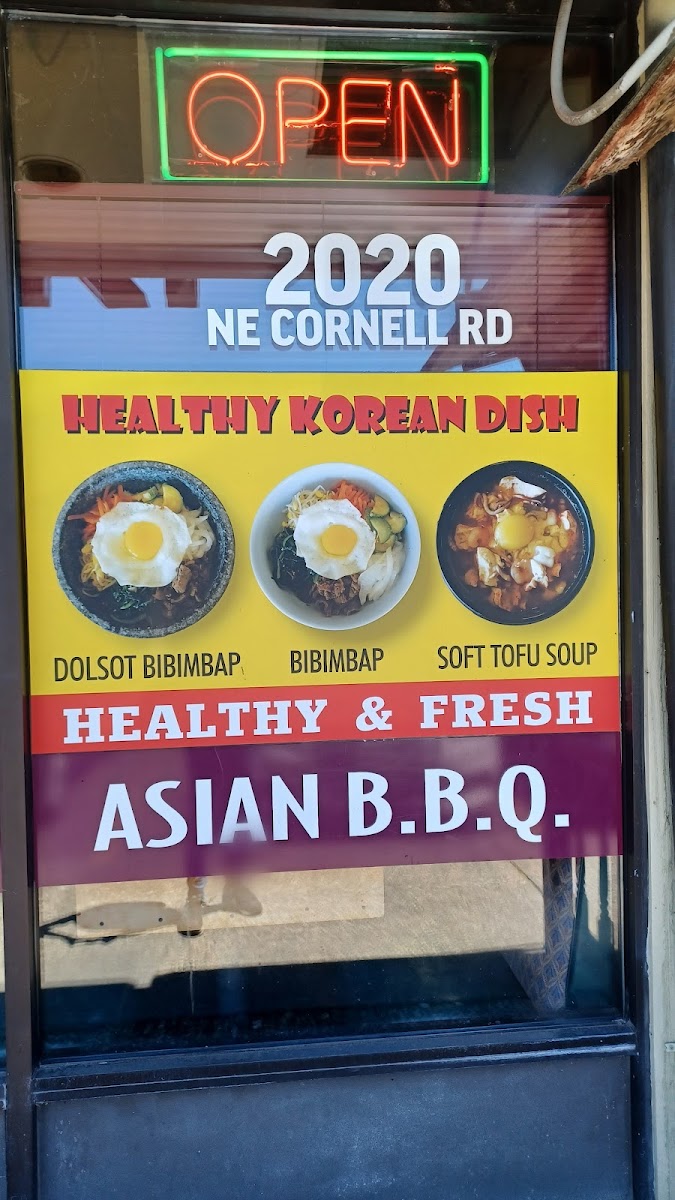 Beef short ribs. Beef short ribs marinated in korean barbeque sauce and grilled fresh to order. Served with white rice and salad with ranch.